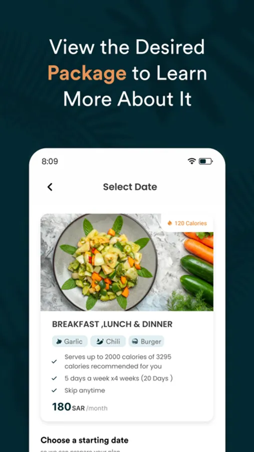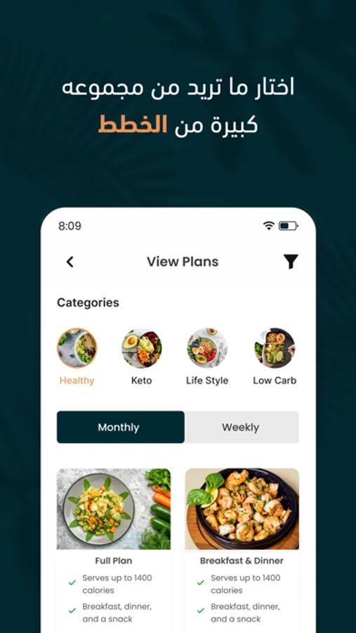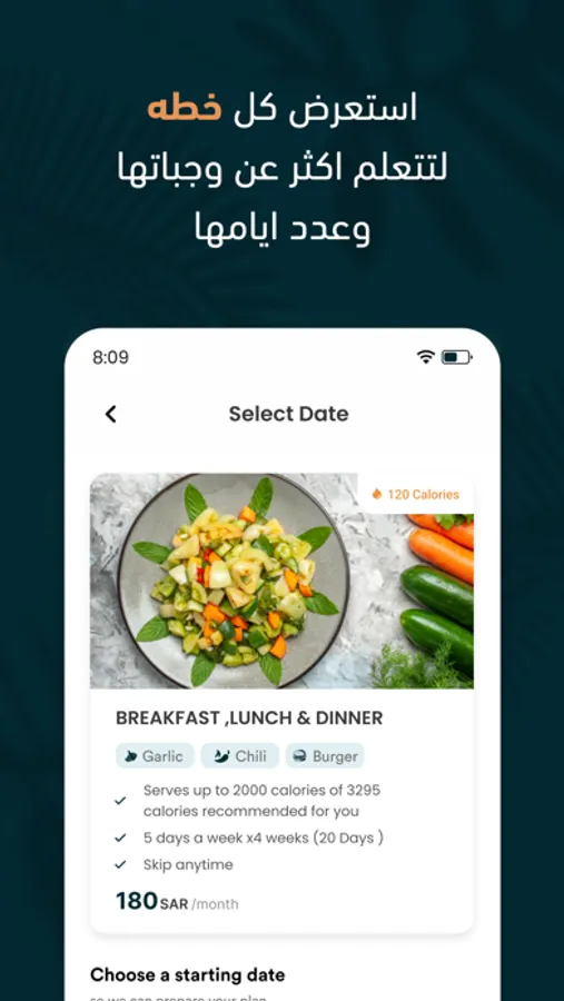 نقدم لك جميع الوجبات الصحية والبرامج الغذائية ليخدم من يحتاج لنمط صحي وتحسين صحته الجسدية والنفسية حيث انه يمكنك ان تختار الباقه المناسبه لك من بين العديد من الباقات المتوفره لدينا كما انه يمكن الاستمتاع بالعروض الحصريه لدينا من خلال التطبيق.