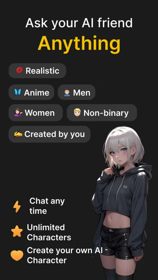 • Your AI companions are always ready to chat, ensuring you can dive into your fantasy world anytime, anywhere.