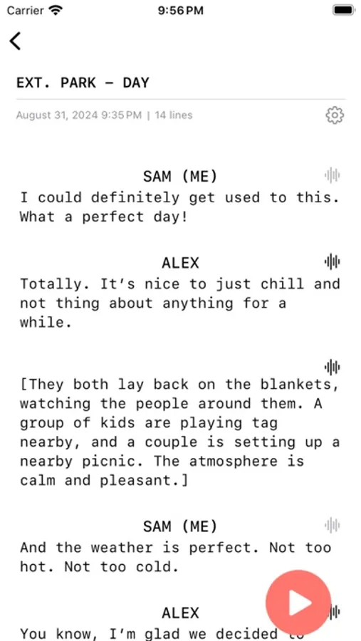 - Use AI text-to-speech to hear your scene partner's lines read aloud with natural, expressive voices to enhance your practice experience