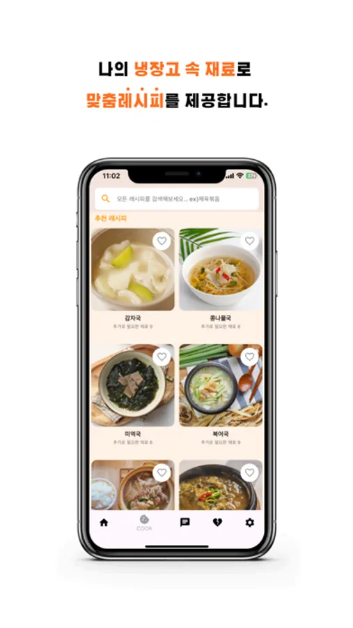 - AI 셰프가 제공하는 맞춤 요리 레시피로 맛있는 요리를 만들어보세요.