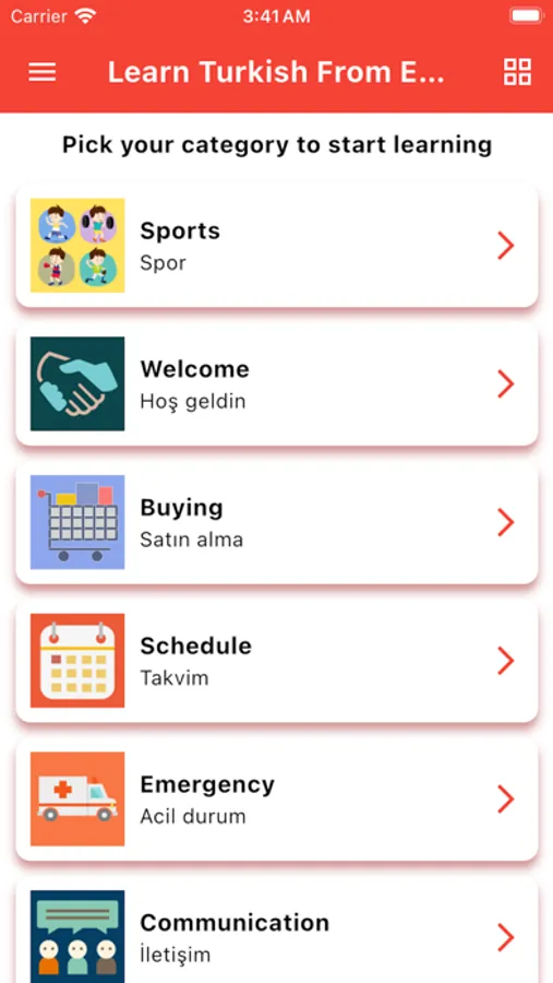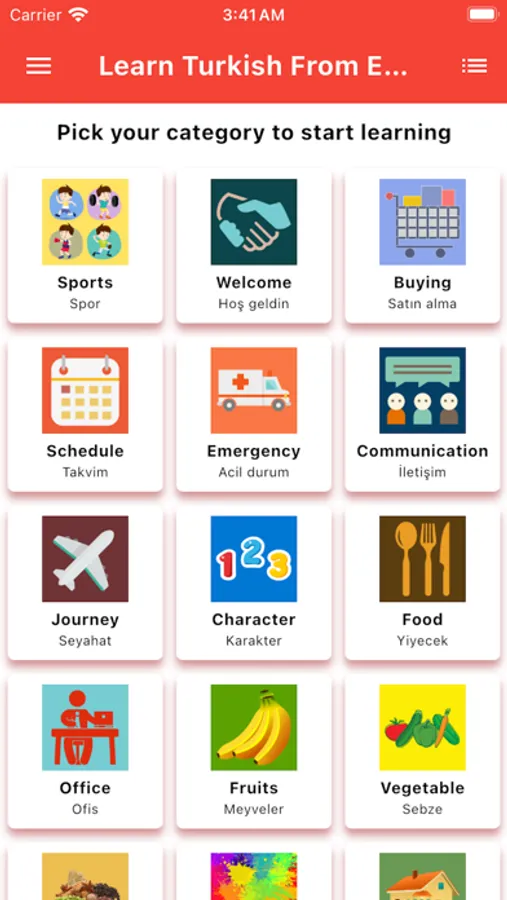 18 Categories: Delve into 18 well-organized categories covering a wide range of topics to ensure structured and effective learning. Each category is tailored to cover essential subjects, helping you communicate fluently in Turkish.