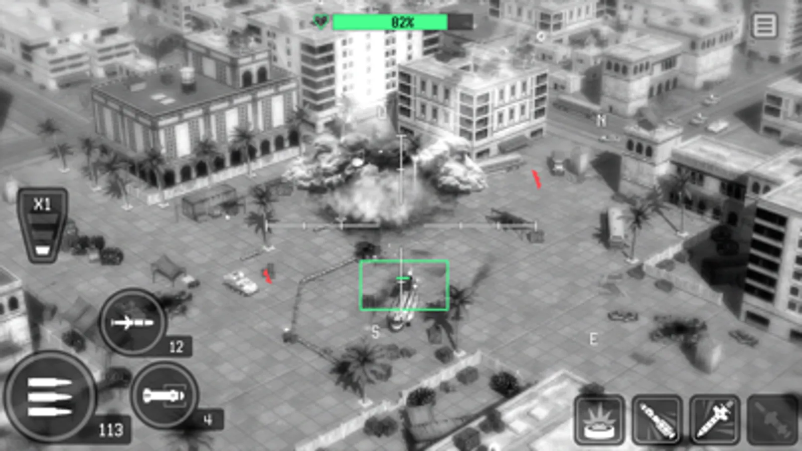 • Fire 25mm Gatling guns, launch Hydra 70 rockets, and deploy Hellfire missiles to wipe out enemy squads.
