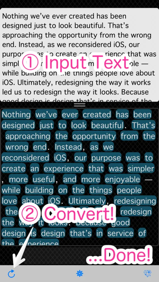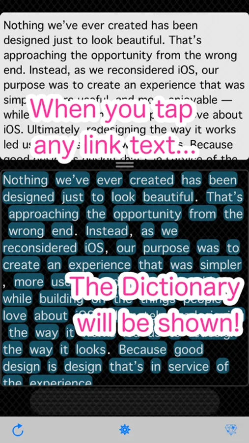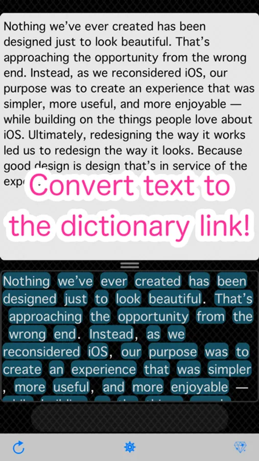 This app can help you to check your sentences. If you want to know the detail of any word, just convert it! This is changing your sentences to be text with links, which means you can more easily access to default dictionary!