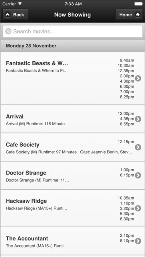 The Cinema Paradiso App will keep you up to date on all current and upcoming movies, with dates and session time.