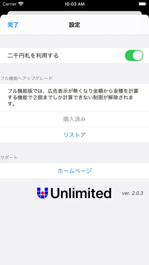 二千円札に関しては環境設定で「利用する/利用しない」を設定できます。