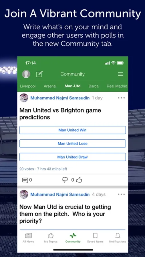 - A community of Football lovers! Post stories or polls, comment on stories, tag articles and earn reputation points and badges!