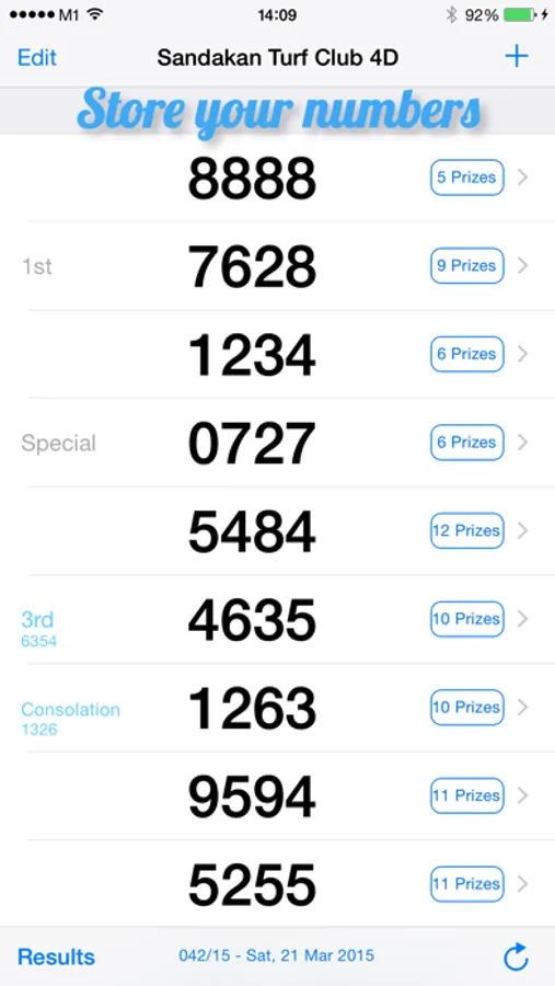 - View Sandakan Turf Club 4D results with your favorite 4D numbers and their permutations highlighted.