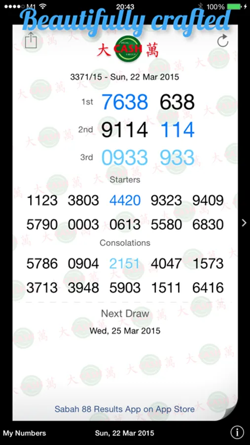 - Check the latest and past Special Cash Sweep results by swiping left or right on your iOS device.