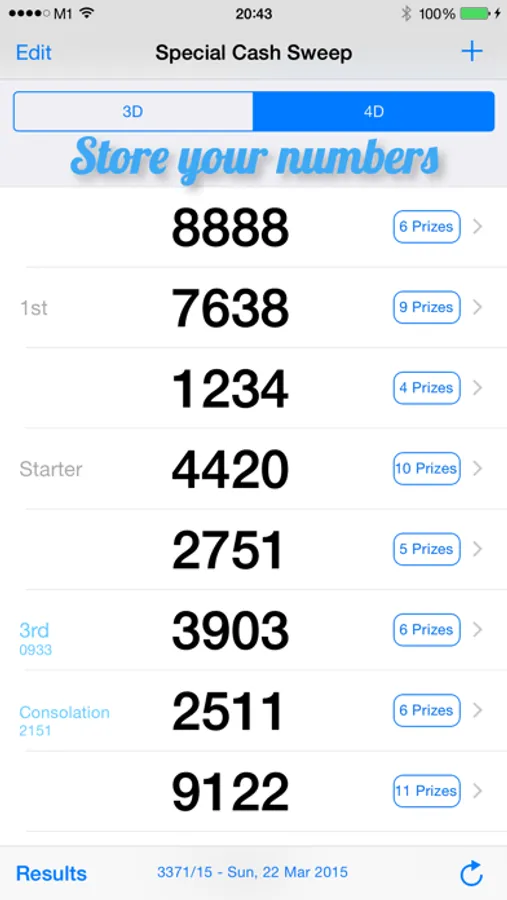 - View Special Cash Sweep results with your favorite 4D numbers and their permutations highlighted.