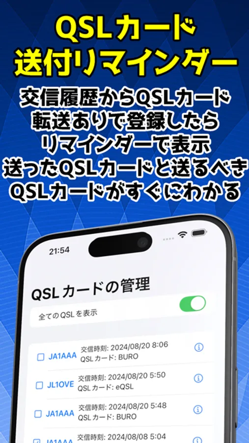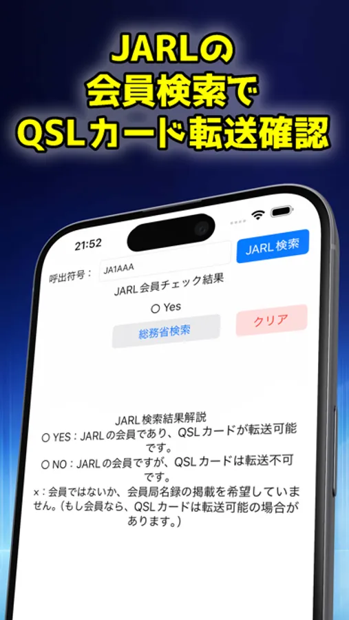 HAM QSO Support is the first amateur radio app to integrate this feature, allowing you to instantly check JARL membership status and QSL card transfer availability.