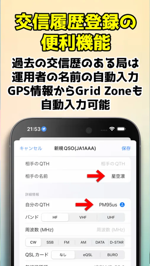 Simply enter a callsign to immediately retrieve registered station information. You can easily input the QTH from search results, and even identify the country from the callsign prefix.