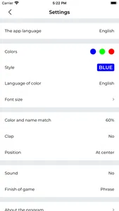 In different parts of the screen in random way you can see name of word – color name of the word “CLAP”. The color of the word is selected in random way too. You need to say the color (not the written word) and clap your hands, if you see the word “CLAP”.