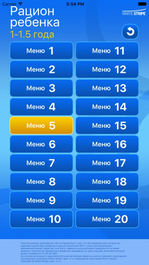 В приложении предусмотрена функция, воспользовавшись которой, вы можете отмечать съеденные рационы, чтобы на следующий день выбрать другой рацион и другие рецепты.