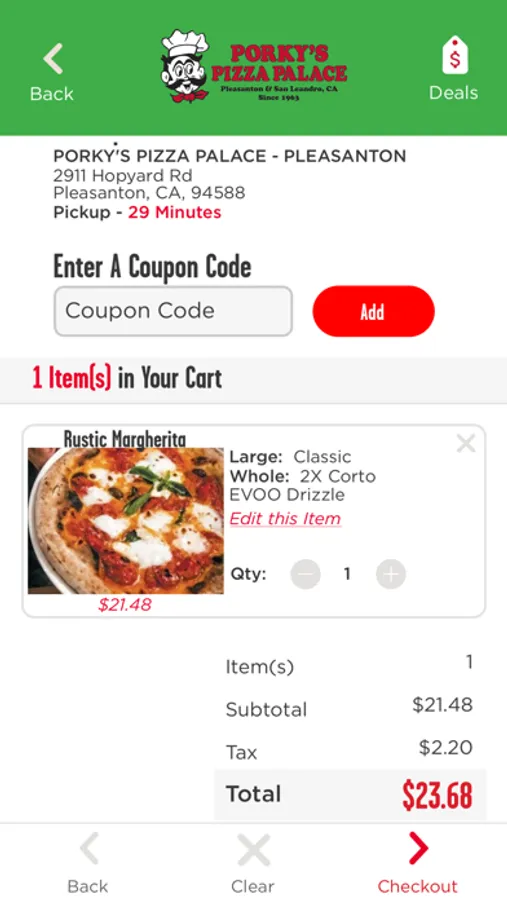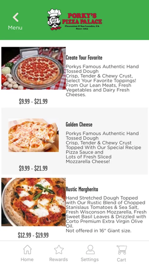Porky's Pizza Palace is a neighborhood landmark for Great food, Great service and Good times, served up in a comfortable family atmosphere. Our Authentic Hand Tossed Pizza is prepared fresh daily beginning with our homemade recipe dough that produces our unique crust, crispy on the outside, but light and chewy on the inside. It's topped with our special recipe zesty pizza sauce, prepared with only fresh pack tomatoes, fragrant basil, oregano, spices and other secret fresh ingredients. This is topped with fresh sliced Real California Mozzarella Cheese, the Freshest Vegetables, Leanest, Juiciest Meats and the best ingredients, be they local or imported, we have found in the 45 years in business. Try our marriage of homemade dough and tangy tomato sauce together with special hand-picked fresh ingredients, delight your palate with flavor today!