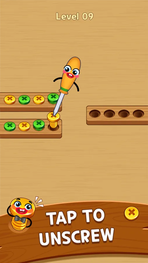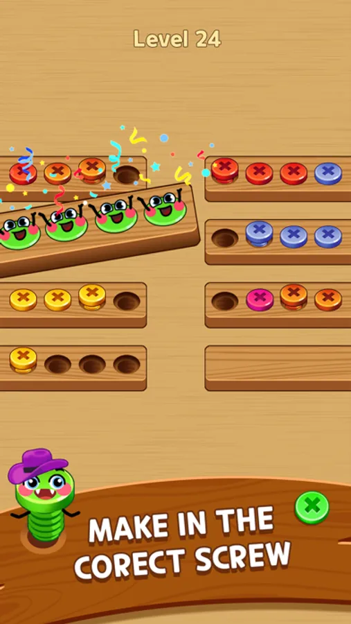 4. You will win the game if you complete the same-colored screws into the wooden bar.