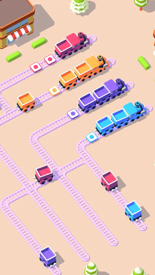 Embark on a captivating journey with "Train Puzzle," a level-based game that challenges your strategic thinking and problem-solving skills. On a grid, various colored engines and their carriages are placed individually. Your mission is to maneuver each piece into specific positions and seamlessly form complete trains without causing any collisions. As levels progress, the puzzles become increasingly complex, testing your ability to plan ahead and execute flawless moves. Can you master the art of train assembly and become the ultimate Train Puzzle conductor?