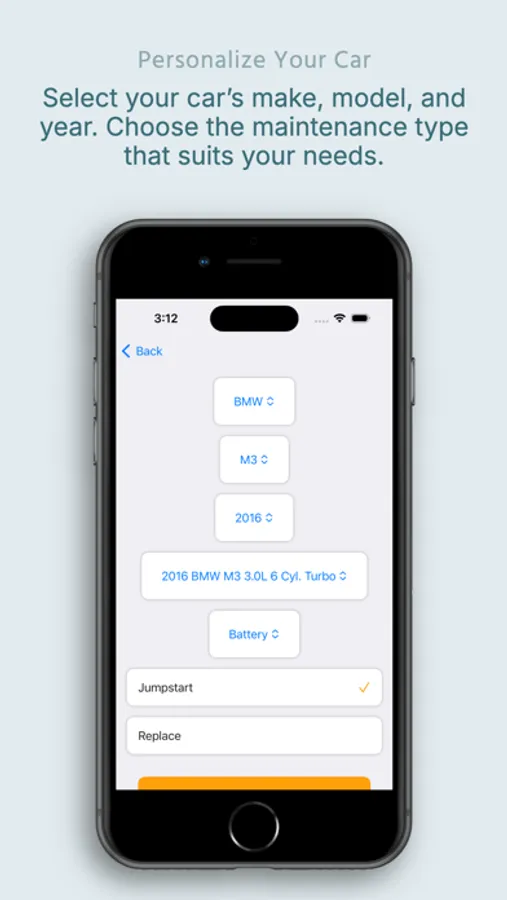 Pick a Maintenance Task: Browse through a list of maintenance types and subtypes tailored to your car.