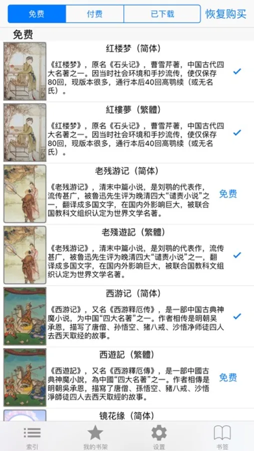 2,该程序带有独自的文本阅读器,可以离线阅读下载到设备的中国古典名著。