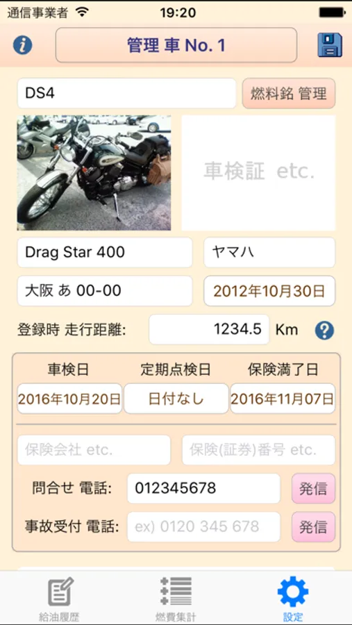 ・車検日や保険会社の連絡先 etc.を登録可能。