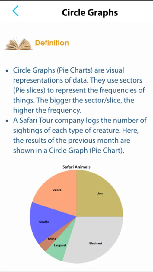 An interactive pie chart displays current progress for each topic. You can touch the different color slices of the pie and choose if you wish to answer only incorrectly answered questions, unattempted or correctly answered questions. This feature is very useful to achieve 100% score in each topic.
