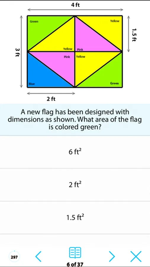 After you have practiced all types of questions, you can take a Mock Test with 50 questions. The Mock Test has questions selected randomly from each topic. Scores for the mock tests taken in the past are displayed in a bar chart. This is a great way to track how you are progressing in mock tests. There is no limit on how many mock tests you can take.