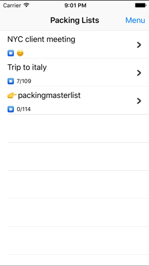 List Composition lets you select items from existing lists to generate new lists. To take advantage of this feature, you need maintain a master list containing all your travel items. Before each trip, select items from the master list to generate a new list specifically for the trip.