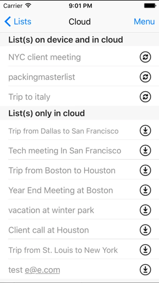 “Packing List Cloud Connector” is an optional paid feature. With the feature, you can edit lists in web browsers on desktops or laptops; upload, download, synchronize and operate on the same lists from multiple devices; backup lists to our cloud server.