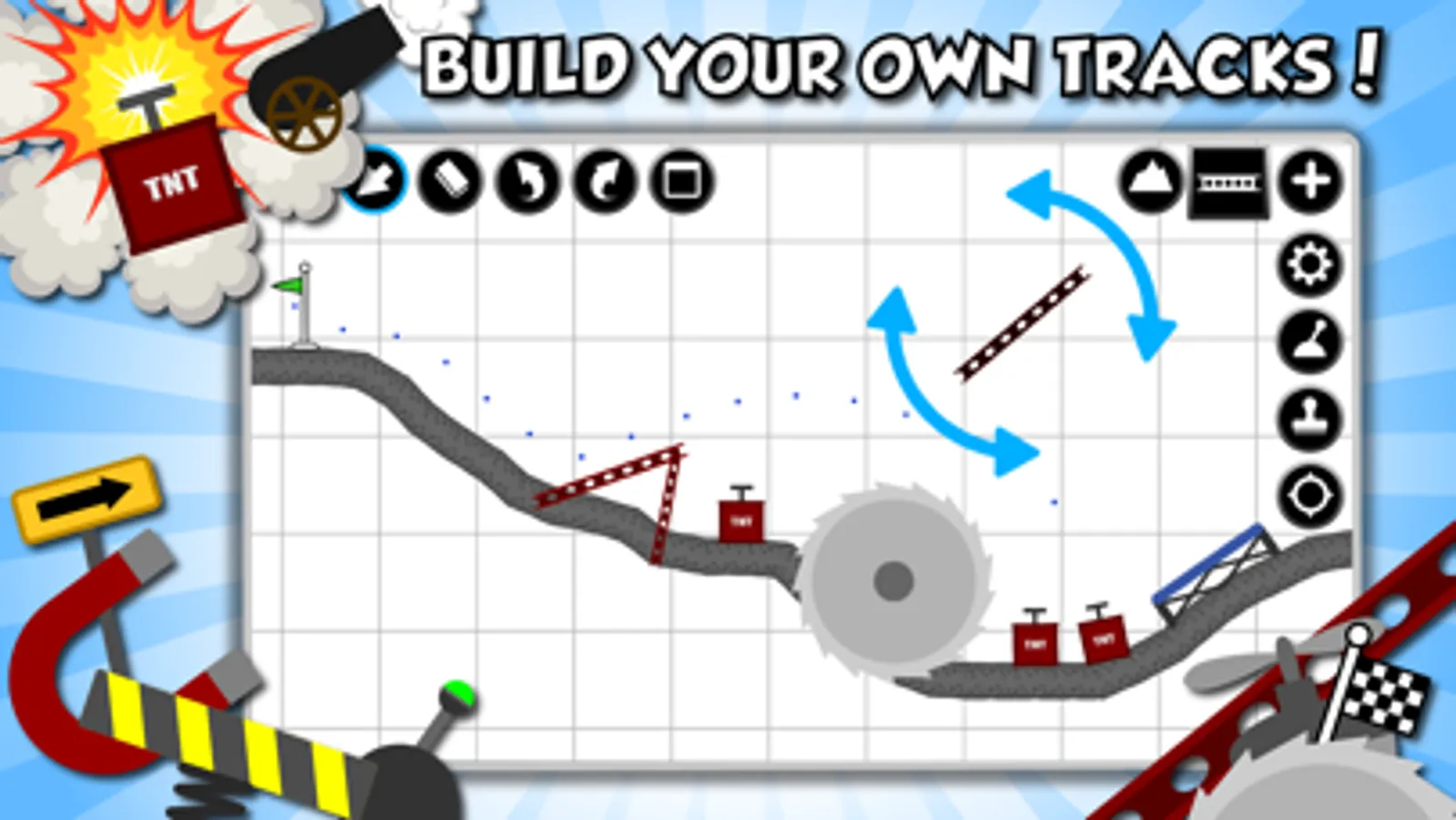 Build your own tracks and compete with your friends! Earn coins and buy your dream cart! Take the game where you want it to go but get there fast because you're on the clock!
