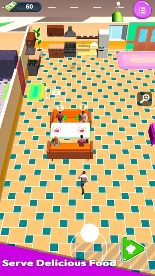 Follow the directions. Collect money. You'll need it to unlock new tables and upgrade your restaurant.