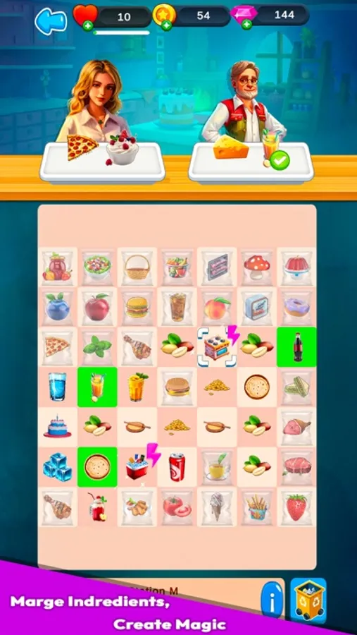 Merge to Cook: Combine matching ingredients to create something new! Merge water and water to make ice cubes, merge wheat to grow crops, and keep merging to create maize. Use these ingredients to whip up tasty dishes like burgers and sandwiches.