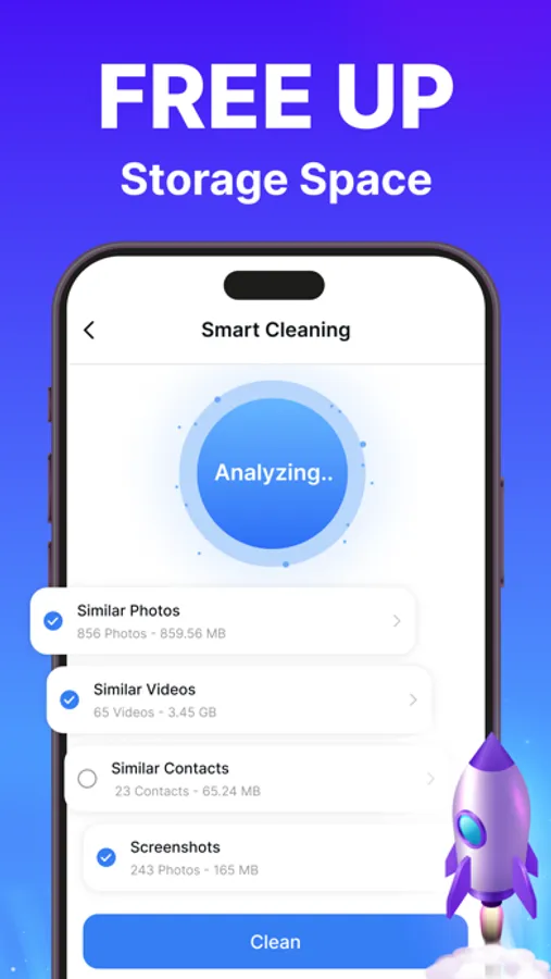1. Smart Cleaning: Tired of manually searching for files to delete? Our Smart Cleaning feature does the heavy lifting for you. It automatically detects and removes unnecessary files, caches, and junk that are slowing down your phone, boosting performance and freeing up valuable space.