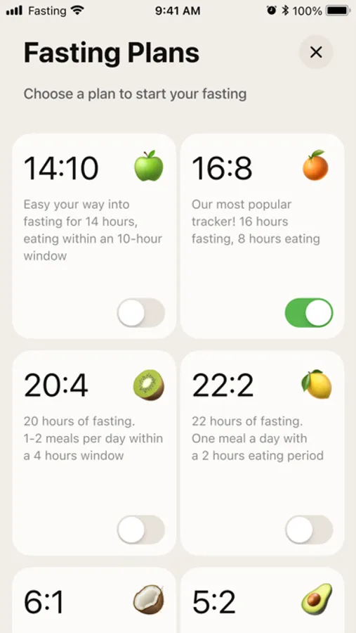 Kickstart your fasting journey with tailored fasting plans. Choose a plan based on your age, body type, and goals: