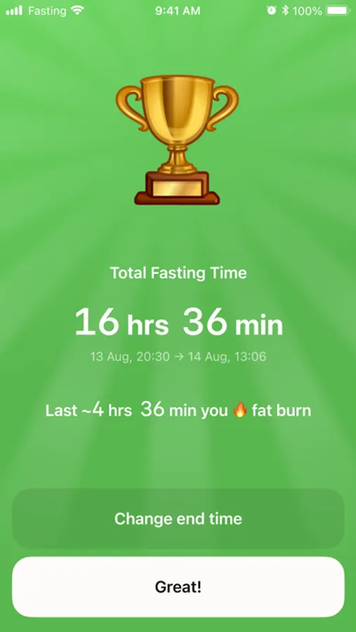Customize your fasting and eating periods with a single click! Stay motivated with handy reminders and insightful tips. Track key stages of your fast and understand what’s happening to your body during fasting.