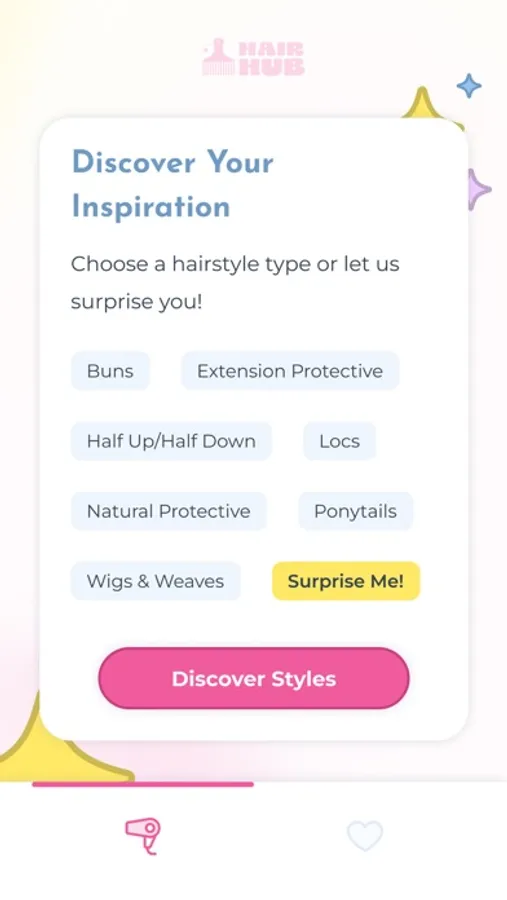 Hair Hub is a swipe-style hair inspiration app that lets you browse hairstyles like a dating app, then plan and execute the looks you love. The app combines styling guidance, product recommendations, and educational tools to help users explore the full versatility of their hair and build a healthy, consistent routine while saving money.