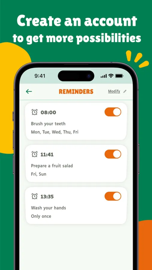 - Notifications: to remind to the child that he/she has to brush his/her teeth