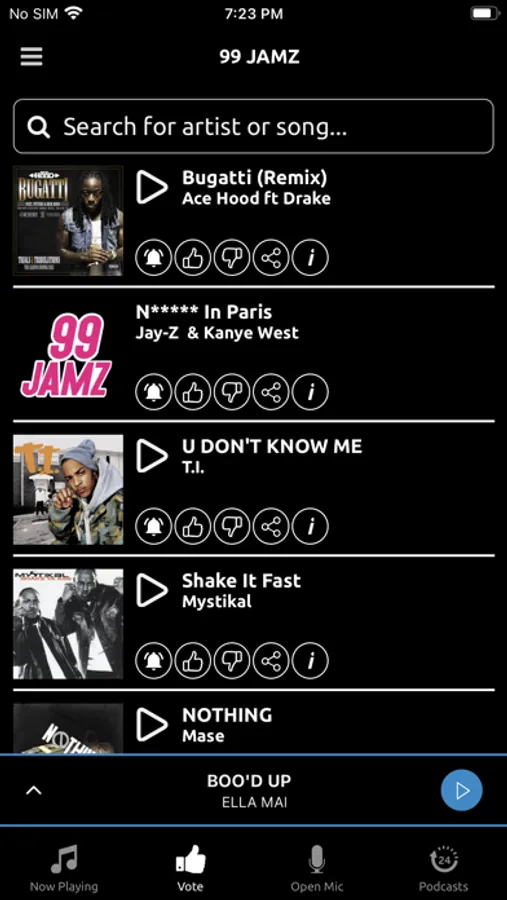 This app allows you to hear 99 Jamz live 24/7, vote on the music that you want to hear from your favorite Hip-Hop and R&B artist, record a message to play on air with our "Open Mic" feature, set up reminders/alarms with custom recorded messages from your favorite 99 Jamz artists and more!