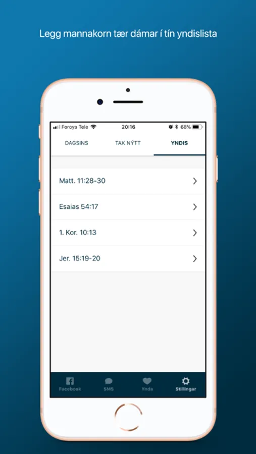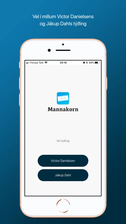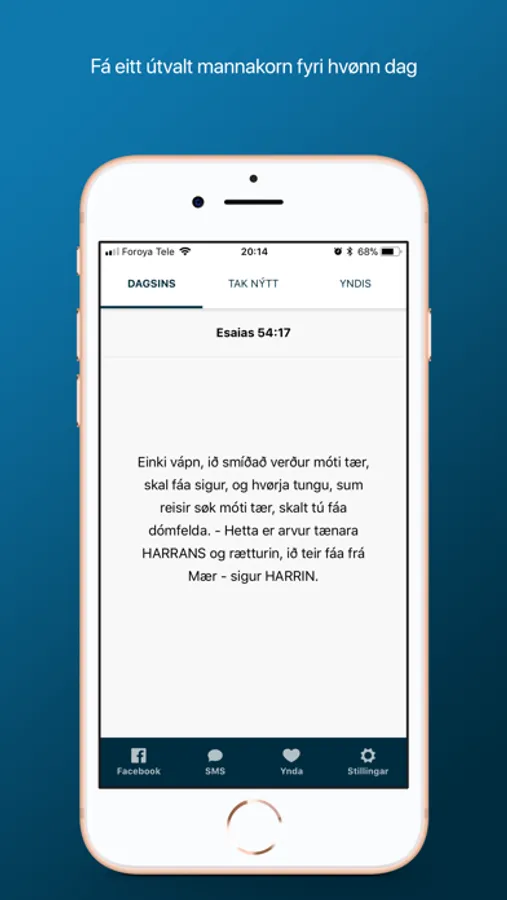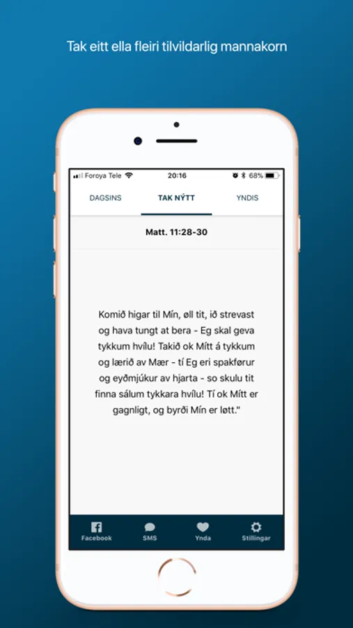 Mong kenna tey góðu, gomlu mannakornini, og við appini "Mannakorn" eru hesi vorðin talgild. Her kanst tú skjótt og lætt taka eitt mannakorn og lesa eitt bíbliuvers. Til ber at deila versið á facebook ella sum sms, umframt at goyma versið sum eitt av sínum yndisversum.
