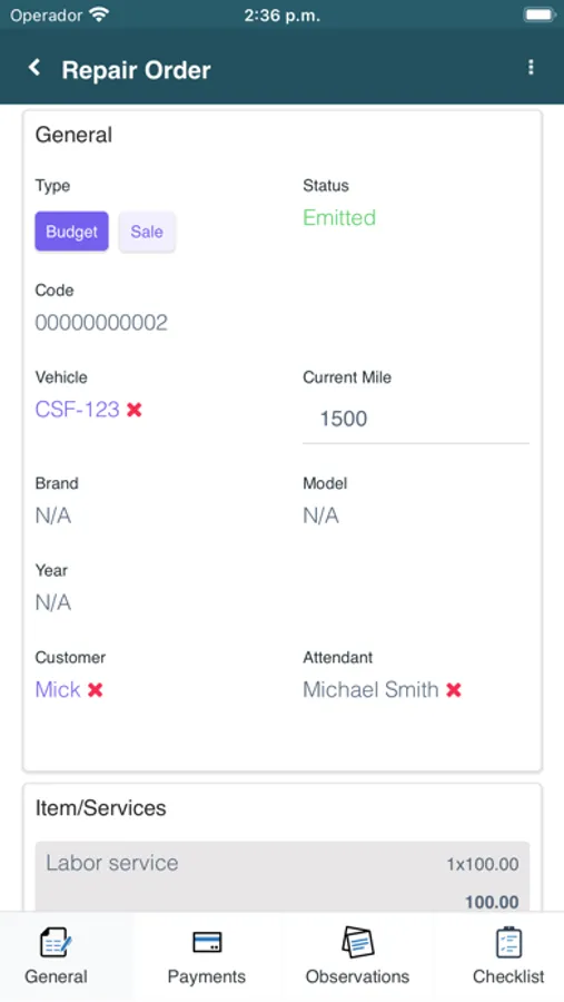 Sistema for Automotive Workshop Management with scheduling, checklist, and work orders.