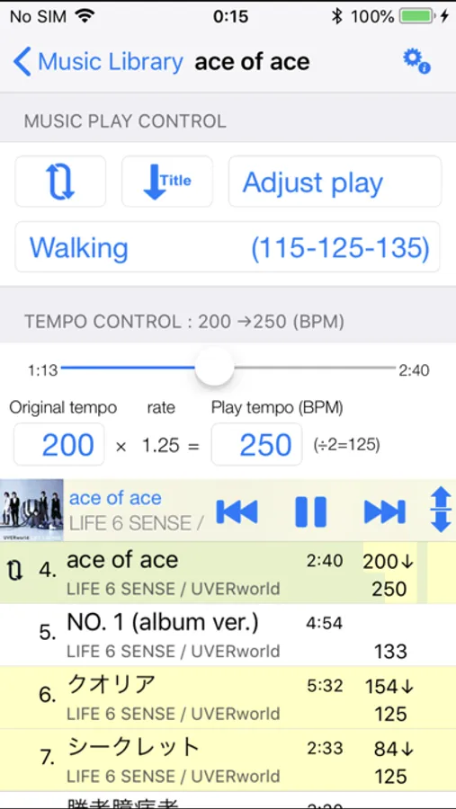 - And playback song list can Title (album track No order), or tempo display order. (You can also shuffle)