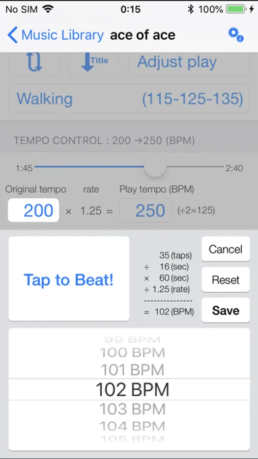 - We will automatically analyze the original tempo of the song stored in the music library.