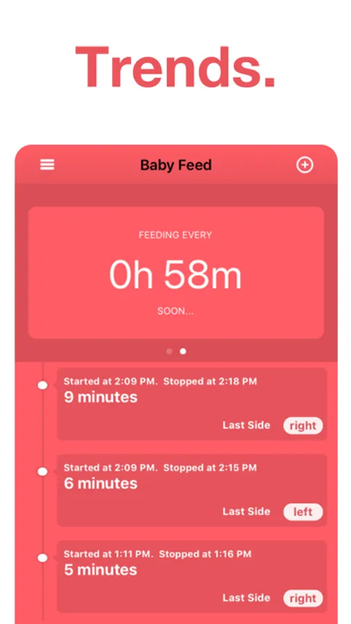Old-school moms used to attach pins to their bra so they could remember which breast was due to use next, but modern moms can use Baby Feed to keep track of feeds and trends.