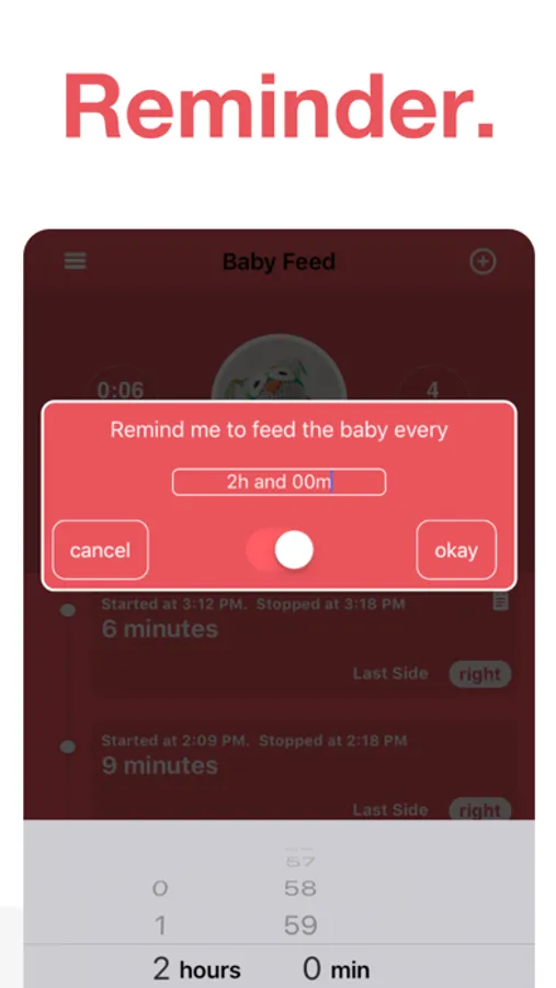 • Set a reminder to be alerted when it's time to feed