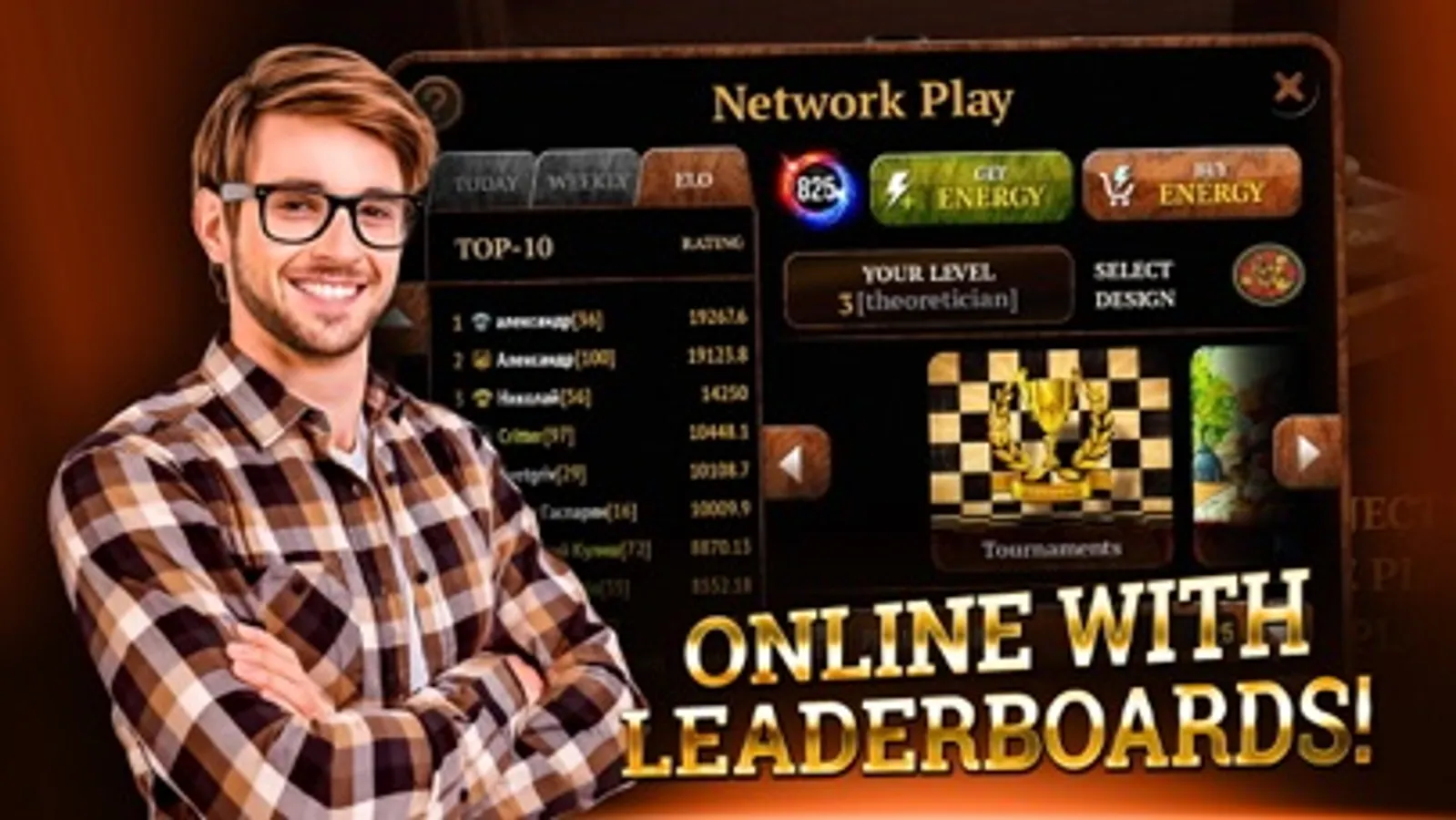 • Online Checkers mode with leaderboards, levels, ranks, customization and ELO-rating