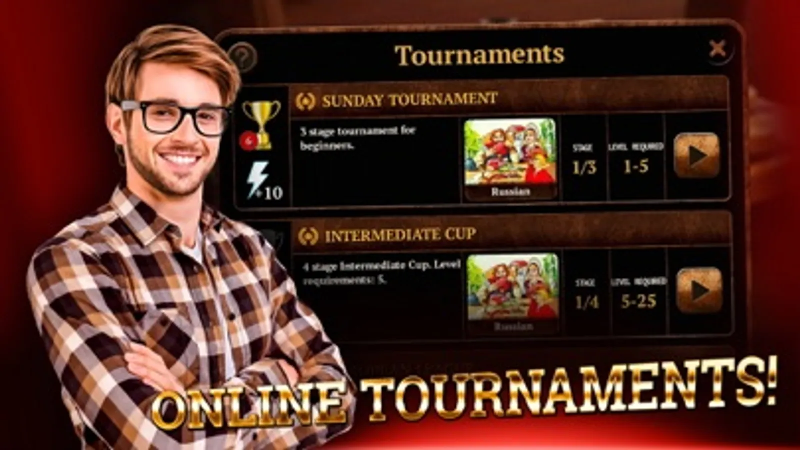 • Online tournaments with cups and awards