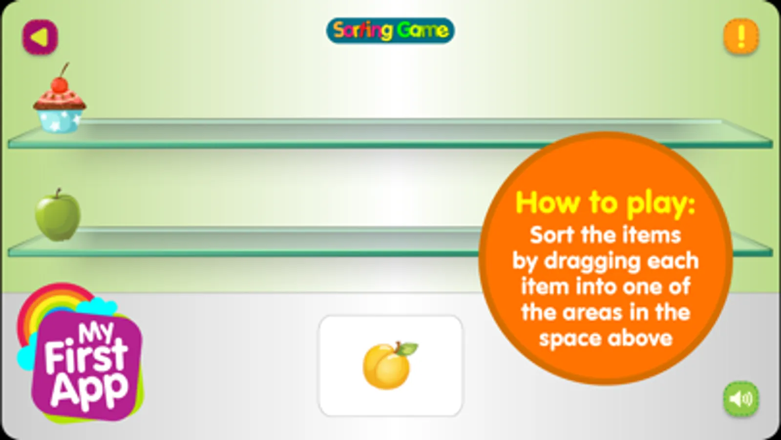 HOW TO PLAY: Sort the items by dragging each item into one of the areas in the space above. This game is one of a series of educational games for kids by MyFirstApp.com. We believe that learning, playing, exploring and experimenting is what children do best. Children are fascinated with the wonderful, exciting world around them. With the touch pads revolution a whole new world of games is evolving - opening new horizons for the very young. Thus, young children can now enjoy colorful, exciting new games, helping them acquire new cognitive and fine motor skills. MyFirstApp.com helps bringing this new and enriching world to the curious little fingers of young children.