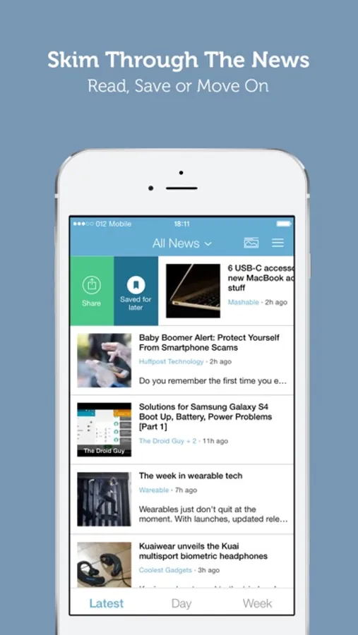 - Collapsed mode - skim through the news and decide what you want to read, save or share
