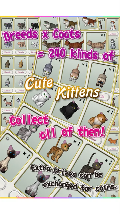 And, with the variety of various coats of hair, there are total number of 240 kinds. New friends come up every day. Let's aim at the completion of the collection while being covered with cute cats.