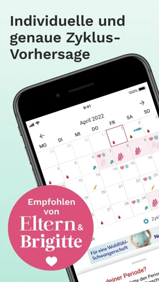 • Zykluskalender: Behalte deinen Zyklus im Blick, selbst, wenn die Zykluslänge variiert.