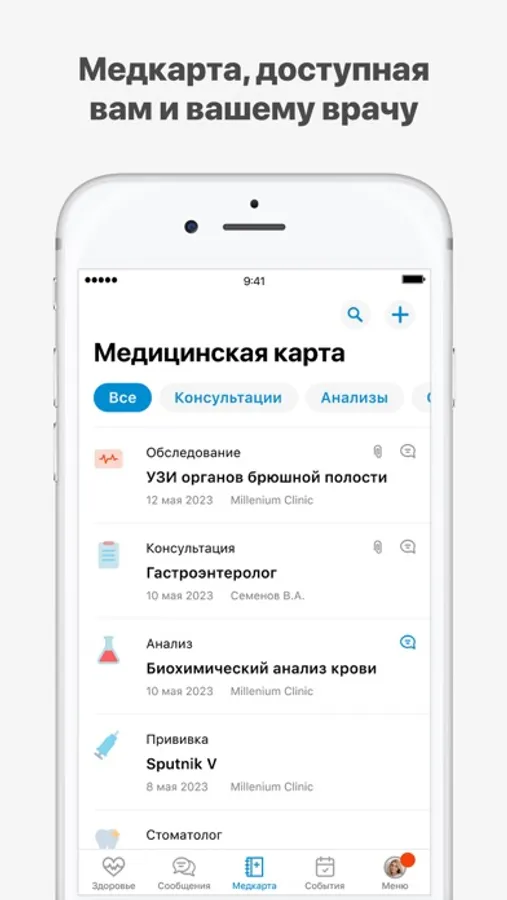 – Доступ к Вашим медицинским документам (врачебные заключения, результаты обследований и анализов);