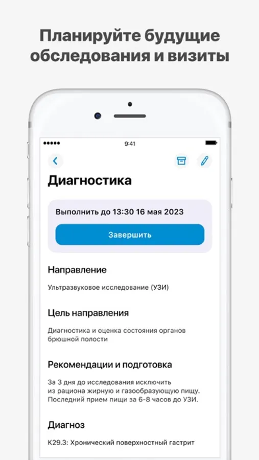 – Просмотр плана лечения – свой или членов Вашей семьи;